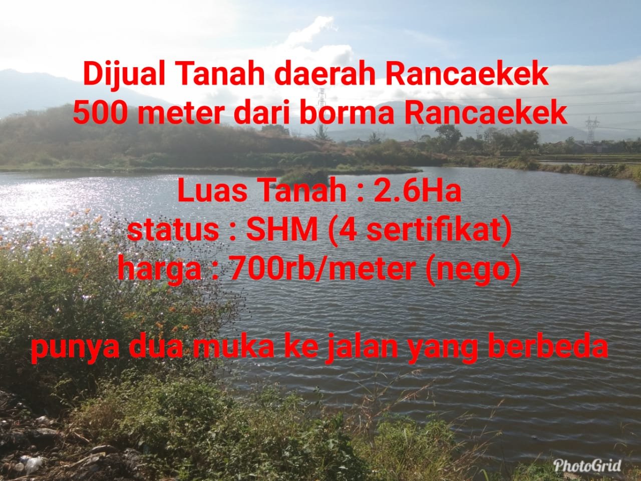 Dijual Tanah 2 muka di Rancaekek Belakang Borma