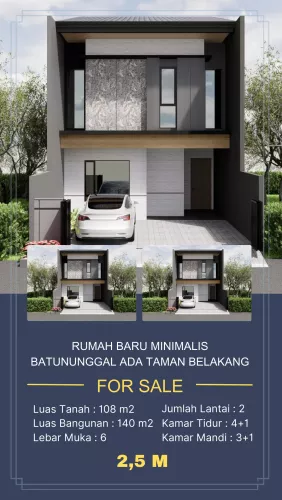 Jual Rumah Baru Minimalis Batununggal Ada Taman BelakangLuas Tanah : 108m2Luas Bangunan : 140m2 Lebar Muka : 6mLantai : 2Kamar Tidur : 4+1Kamar Mandi : 3+1Carport : 2Hadap : utaraHarga : 2,5MContactSTELLA - 081910555435https://wa.link/0py3w6Discovery Property@stelladiscovery
